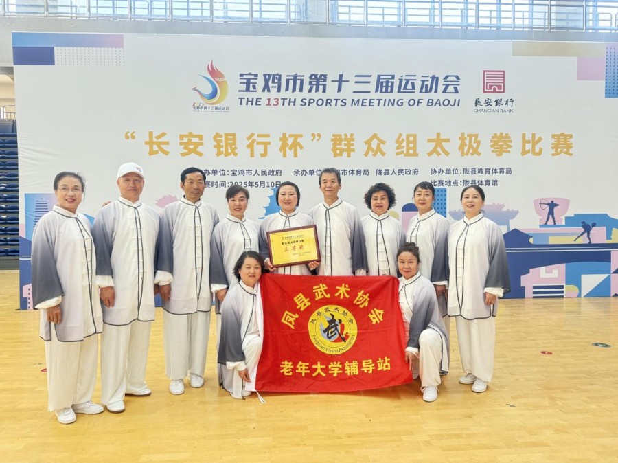 近日,宝鸡市第十三届运动会群众太极拳24式比赛现场,来自凤县老年大学太极拳班的12名学员凭借稳健的发挥和默契的配合,从全市12支参赛队中脱颖而出,斩获团体三等奖。