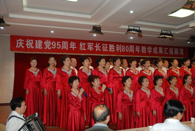 6月28日,为了隆重庆祝建党95周年红军长征胜利80周年,展示老年大学特色办学,创新发展所取得的丰硕成果,宝鸡市老年大学、华厦老年大学举办教学成果汇报展演。市委组织部副部长、考核办副主任米军瑞、市委老干局、市老年事业局局长孙西军、原政协主席、老年大学名誉校长朱宗柱、原政协副主席陈靖劳、原市纪委书记雒秉来等领导和500多名老年学员共同出席开幕式。市委组织部副部长、考核办主任米军瑞宣布庆祝建党95周年暨红军长征胜利80周年教学成果汇报展演开幕。