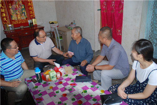 在70多岁的老党员石怀有家里,老人是原移民村支部书记,儿子去年打工受伤腿摔断,未得到工伤赔偿,现在家修养。孙子今年中,家中现无主要劳力。老干部副调研员张智华给老人送上了慰问金,老人激动的说,“谢谢局里的关心,村上对我很照顾,你们应该帮助更需要帮助村民”。张智华嘱咐老人要保重身体,健康长寿,并要求驻村干部及时为他们排忧解难,早日脱贫。