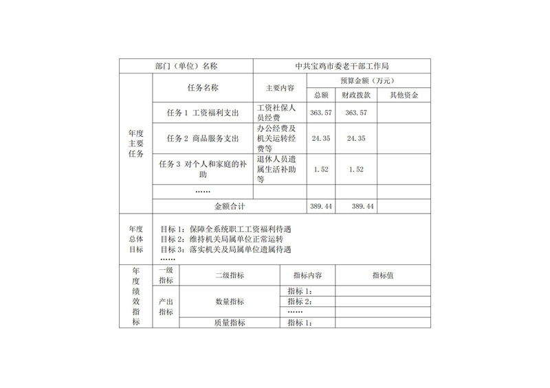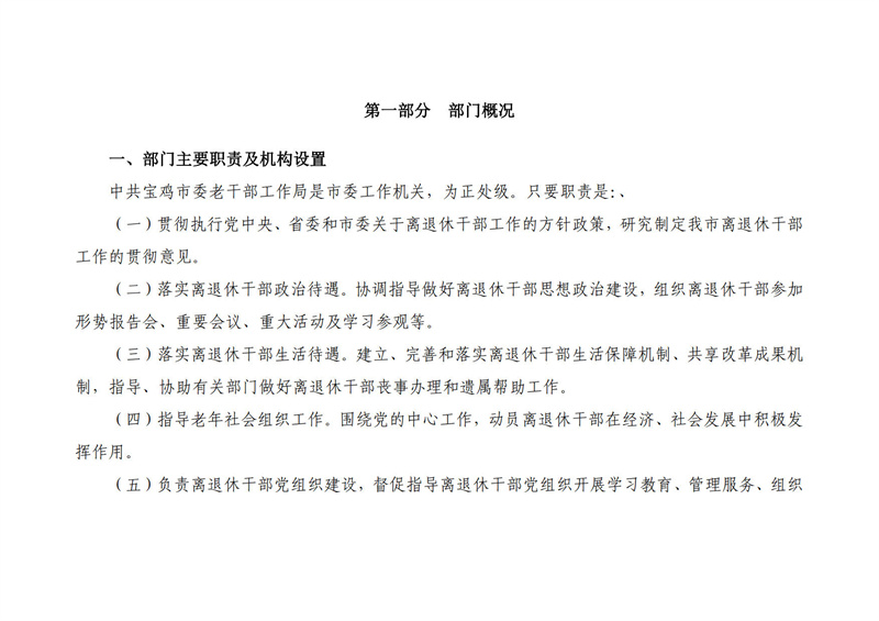 中共宝鸡市委老干部工作局2021 年部门综合预算