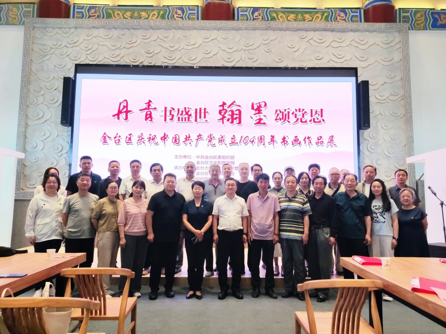 为热烈庆祝中国共产党成立104周年,深入弘扬中华优秀传统文化,生动展现金台区高质量发展的生动实践与群众昂扬向上的精神风貌,7月3日下午,由金台区委组织部、区文化和旅游局主办,金台老年大学、金台区老年书画协会、金台太极园文化景区管委会、金台区慈善协会共同承办的“丹青书盛世 翰墨颂党恩”书画作品展在金台书院顺利举办。金台区委常委、副区长赵玲丽,金台区委常委、组织部部长王化敏,金台老年大学校长贾天奎及离退休干部代表、书画爱好者共200余人参加。