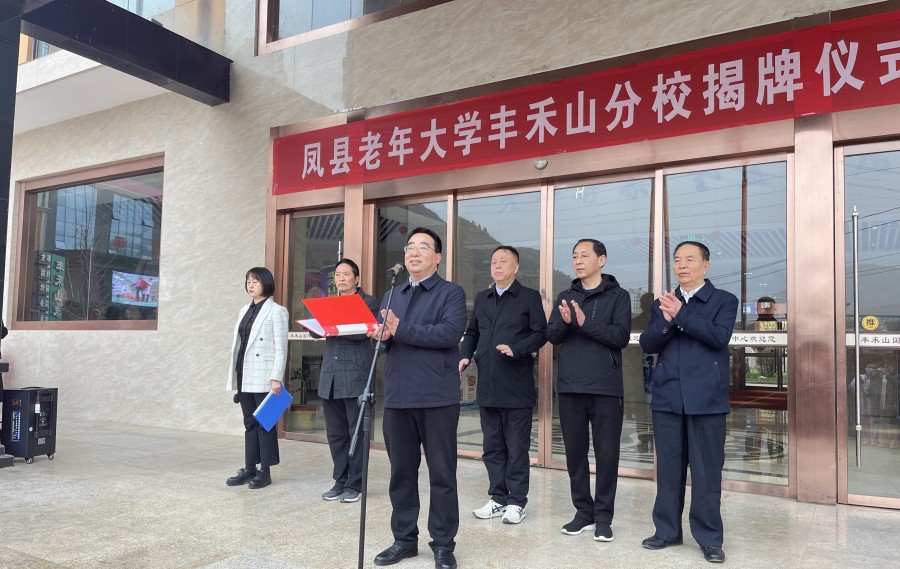 3月22日上午,凤县老年大学丰禾山分校揭牌仪式在丰禾山国际康养中心举行。县委常委、组织部部长焦宝生出席揭牌仪式并致辞。离退休干部、老年大学学员代表共100余人参加活动。