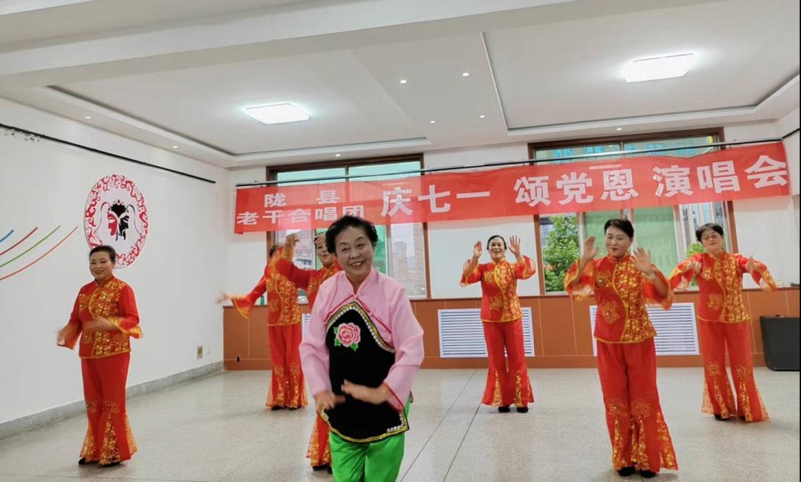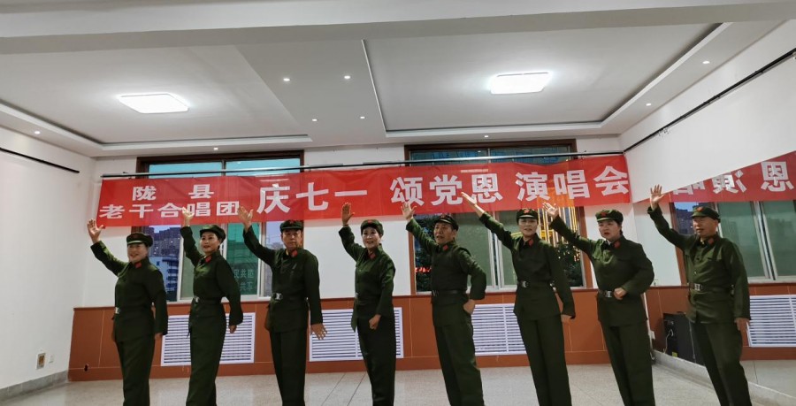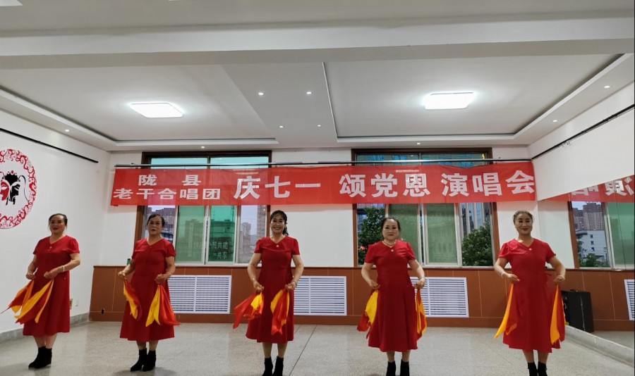 6月28日晚,陇县组织老年大学夕阳红演唱团开展了“庆‘七一’颂党恩”红歌演唱会。