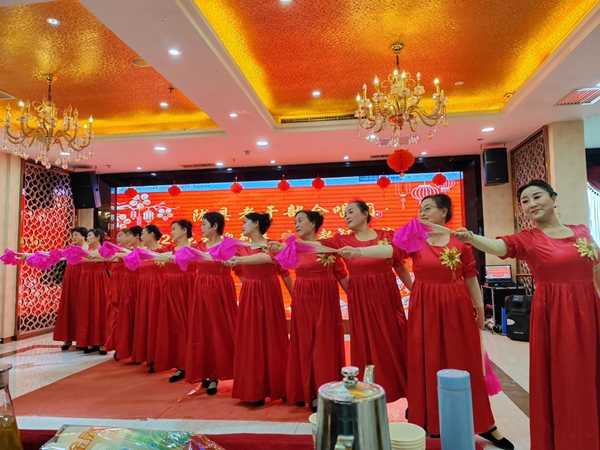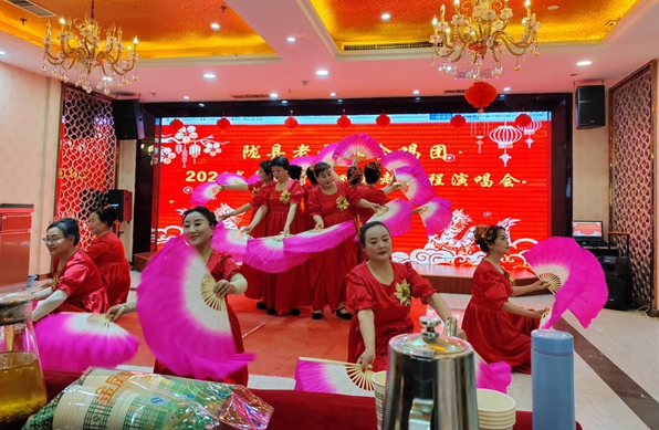 联欢会中,参演老干部们个个身着盛装,精神饱满,洋溢着喜悦与幸福。《唱支山歌给党听》《绣红旗》《拥军秧歌》《山丹丹花开红艳艳》等一曲曲红色经典老歌更是振奋人心,精彩纷呈,高潮迭起,也引来观众的共鸣,每个人心中都激荡着深深的爱国之情和民族自豪感。室外寒风凛冽,场内却温暖如春。老干部用歌舞传递着对祖国和家乡的热爱。大家边品尝水果,边欣赏演出,整场联欢会欢快热烈,气氛十分欢快活跃。