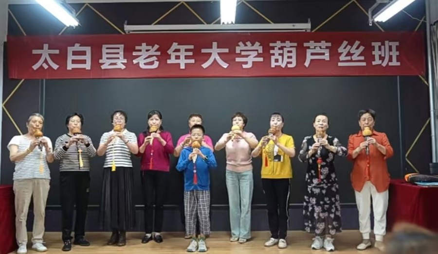 葫芦丝、太极拳、书法、国画……在太白县老年大学,老同志们壮志不已,伏枥犹存,抱着“学无涯 勤为径”的态度,点亮人生下半场,绽放璀璨“夕阳红”。
