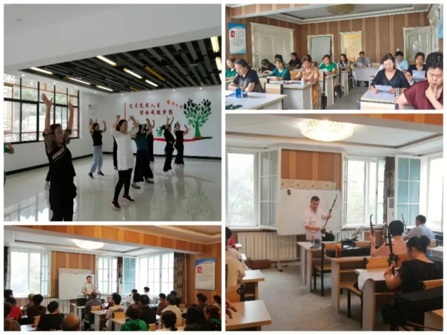 声乐班,学员们正在全神贯注的练习发声技巧;二胡班,美妙的旋律在学员们指尖流淌;国画班,学员们神情专注,聆听山水画历史;书法班,学员们笔走龙蛇,描绘着汉字的魅力;太极拳班,一招一式,行云流水,刚柔并济;朗诵课堂上,学员们用语言表达着最真实的情感;舞蹈教室里,伴着音乐学员们尽情地跳跃、旋转、展现出无尽的生机与活力……