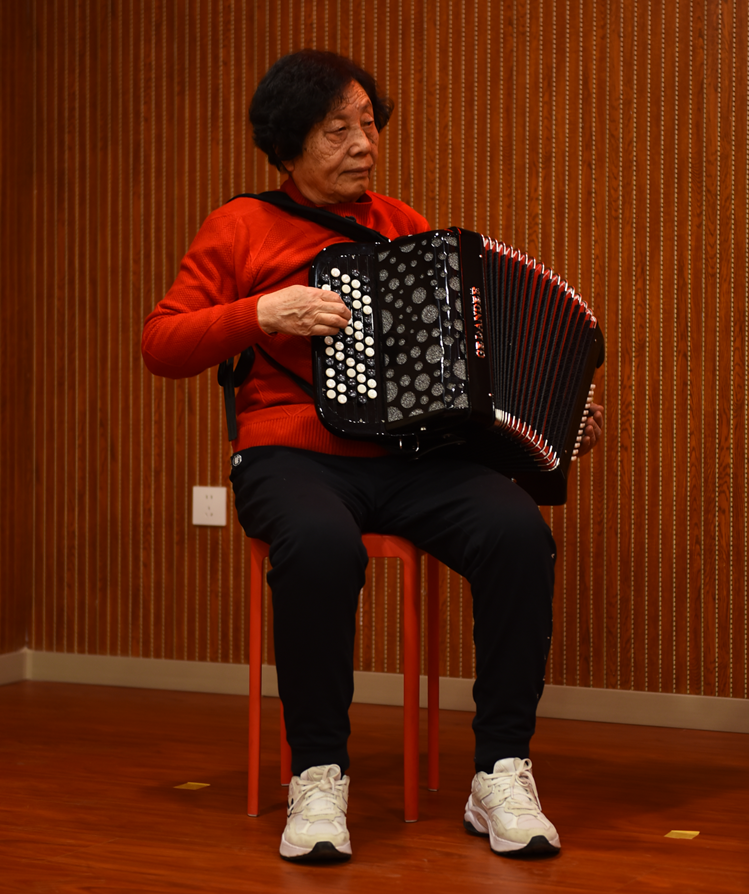 音乐会现场,灯光柔和地洒在舞台上。当市老年大学手风琴班的学员们身着盛装,面带微笑,手捧手风琴登场时,台下响起了热烈的掌声。他们的手指在琴键上轻快跳跃,风箱有节奏地开合,悠扬的琴声如潺潺流水般倾泻而出。从经典的《花儿与少年》到欢快悠扬的《随想圆舞曲》,曲目丰富多样,风格各异。演奏者们或独奏,展现个人精湛技艺;或合奏,默契配合,将不同声部完美融合。每一曲终了,观众们都沉浸其中,掌声雷动,赞叹不已。这些中老年手风琴爱好者们来自各行各业,因对手风琴的热爱而相聚。为了这场音乐会,他们数月来精心筹备,克服了记忆力减退、手指灵活性下降等诸多困难,反复练习。他们用音乐诠释着银龄生活的多彩,正如一位80岁的学员邓欢庆所说:“手风琴是我们的伙伴,让我们的生活充满活力与激情。”这场银龄音乐会不仅是一场音乐的聚会,更是岁月沉淀下的艺术绽放,激励着更多中老年人在专业敬业老师的带领下,勇敢追求自己的兴趣爱好,在艺术中续写人生的华丽篇章。