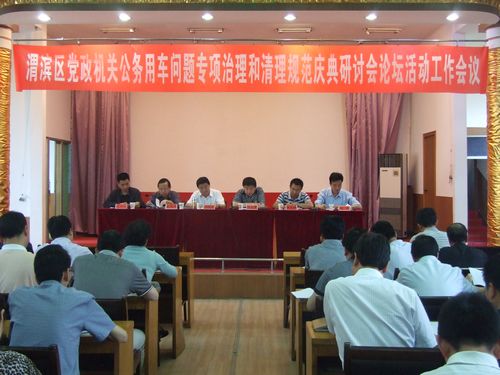 在2011年6月1日渭滨区召开的党政机关公务用车问题专项治理和清理规范庆典、研讨会、论坛活动工作会议上,印发了《关于开展党政机关公务用车问题专项治理工作的实施方案》和《清理和规范庆典、研讨会、论坛活动的实施方案》,区委常委、常务副区长孙西军指出,通过专项治理,渭滨区应重点解决以下6个方面的突出问题:一、超编制配备使用公务用车,即违反中央或地方、部门公务用车编制规定,超额配备使用、未经审批配备使用、不在编制内配备使用公务用车;二、超标准配备使用公务用车,即超出中央或地方、部门公务用车排气量或价格等标准配备使用公务用车;三、违反规定换车、借车,即擅自采取折旧变卖、转送下属单位、提前报废等方式处理能够正常使用的公务用车,利用职权以各种名义借用、调用、换用下属单位、企事业单位或其他服务管理对象的车辆;四、摊派款项购车,即向下属单位、企事业单位或其他服务管理对象摊派款项购买车辆,或擅自接受下属单位、企事业单位或其他服务管理对象赠送的车辆,以及摊派、转嫁车辆运行费用;五、豪华装饰公务用车,即增加公务用车高档配置或豪华内饰;六、公车私用,即将公务用车用于婚丧喜庆、探亲访友、度假休闲、接送亲友、学习驾驶等非公务活动。