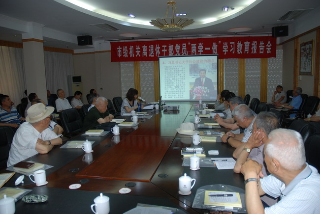 市委老干局局长孙西军参加会议并讲话,副局长田志坚主持,市人大、市政协的50余名离退休干部党员参加了报告会。