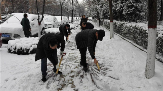 局机关干部还在下雪当天,不但自觉主动地清扫了单位门前的积雪,还为了方便群众来单位办事,把单位通往公交车站台的人行道上的积雪全部扫除,展现了机关党员干部的良好形象。