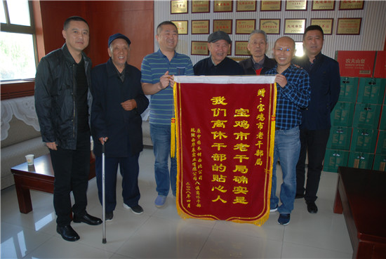 上午,原西北木材一级站总经理、82岁副厅级离休干部贾如白、93岁的离休干部陈守生、91岁的离休干部刘根等3名老同志代表企业8名离休干部,为表达他们对市委老干局的感激之情,在企业领导陪同下来到市委老干局机关,亲手把写有“宝鸡市老干局确实是我们离休干部的贴心人”的锦旗交到了市委老干局副调研员张智华手里,感谢市委老干局近年来对他们无微不至的关心和照顾。