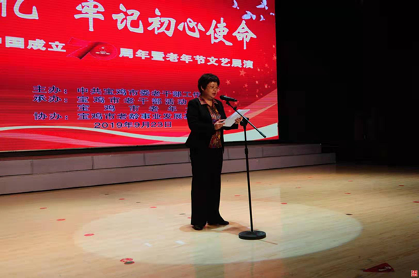 9月23日下午,由宝鸡市委老干部局主办,宝鸡市老干部活动中心、宝鸡市老年大学承办,宝鸡市老龄事业发展基金会协办的全市离退休干部庆祝新中国成立70周年暨老年节文艺展演在宝鸡乐府隆重举行。