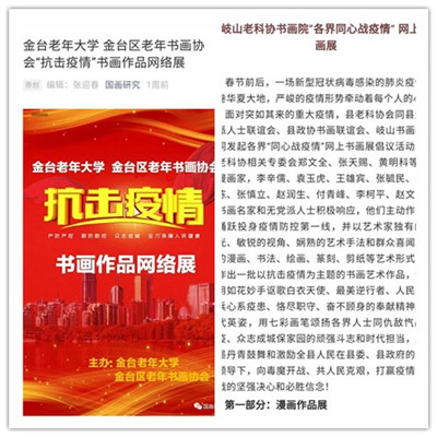 三是加强宣传,营造良好氛围。金台区老年大学、老年书画协会,岐山老科协书画院组织会员积极开展抗击疫情网络书画展,通过这种独特的方式鼓舞士气、传递正能量。老党员们拿起手中的笔,抒发内心的感悟,绘制宣传画,让群众掌握新冠肺炎的防预知识,形象生动,通俗易懂,广受好评。同时,各级离退休干部党支部充分运用信息网络平台,宣传抗击新冠肺炎相关知识,组织广大离退休干部配合街道社区、乡镇村组做好居住地的防疫工作,及时了解国内外的疫情动态,宣传中省市防疫政策及工作部署,引导广大群众在做好自我防控的基础上,不造谣、不信谣、不传谣,共同为抗击疫情做贡献。