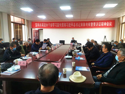 为迅速在全市离退休干部中掀起学习宣传贯彻习近平总书记来陕考察重要讲话精神热潮。4月30日,市委老干部工作局印发《关于组织离退休干部认真学习宣传贯彻习近平总书记来陕考察重要讲话精神的通知》,对全市离退休干部学习宣传贯彻习近平总书记来陕考察重要讲话精神做出具体安排。