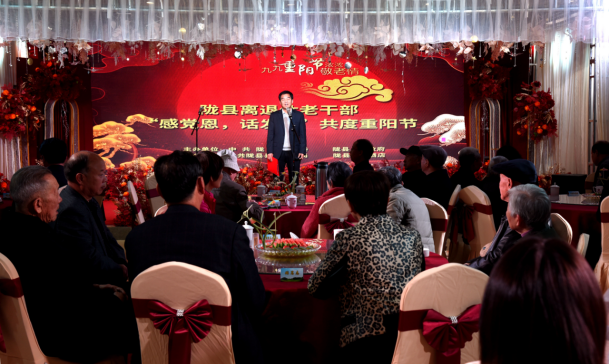 10月21日,陇县县委老干局组织部分离休、县处级退休干部和家庭困难驻村干部父母代表共约60余人,以“回忆过去艰苦生活,感恩当下美好生活,坚定不移跟党走”为主题,召开“感党恩,话发展”共度重阳节座谈会,县级四大班子主要领导出席座谈会,与参会老领导、老同志一起共度重阳佳节,面对面送上节日祝福。