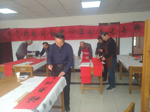 为弘扬优秀传统文化,营造喜庆节日氛围,1月29日,宝鸡市老干部活动中心(老年大学)组织市老年书画协会书法家、书法班师生开展“迎新春 送春联”活动,为驻地社区、派出所、企业及对口扶贫村翟家坡村书写对联500余幅。
