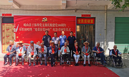6月23日下午,岐山县干休所隆重举行“光荣在党50年”纪念章颁发仪式,现场为9名离退休党员颁发了“光荣在党50年”纪念章。