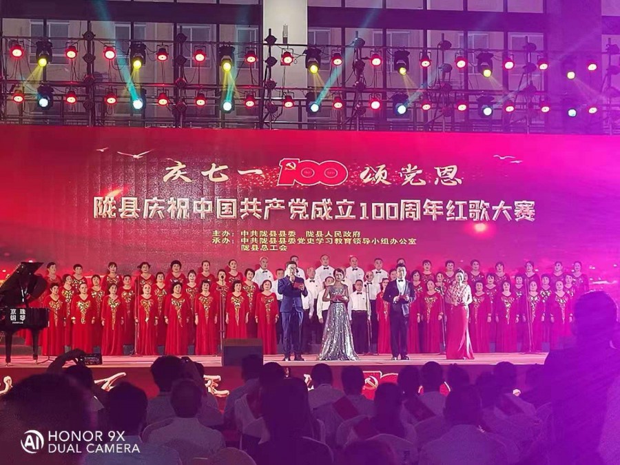 6月23日晚,陇县“庆七一 颂党恩”红歌大赛在县体育馆拉开序幕。陇县老干部合唱团作为助兴节目,受邀第一个闪亮登场。