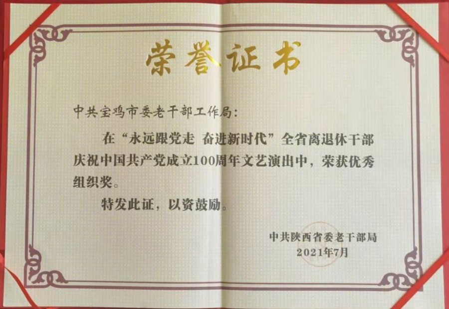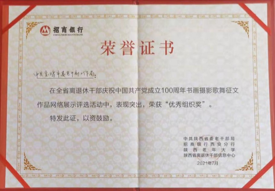 全省离退休干部庆祝中国共产党成立100周年书画摄影歌舞征文作品网络展示评选活动最佳人气奖