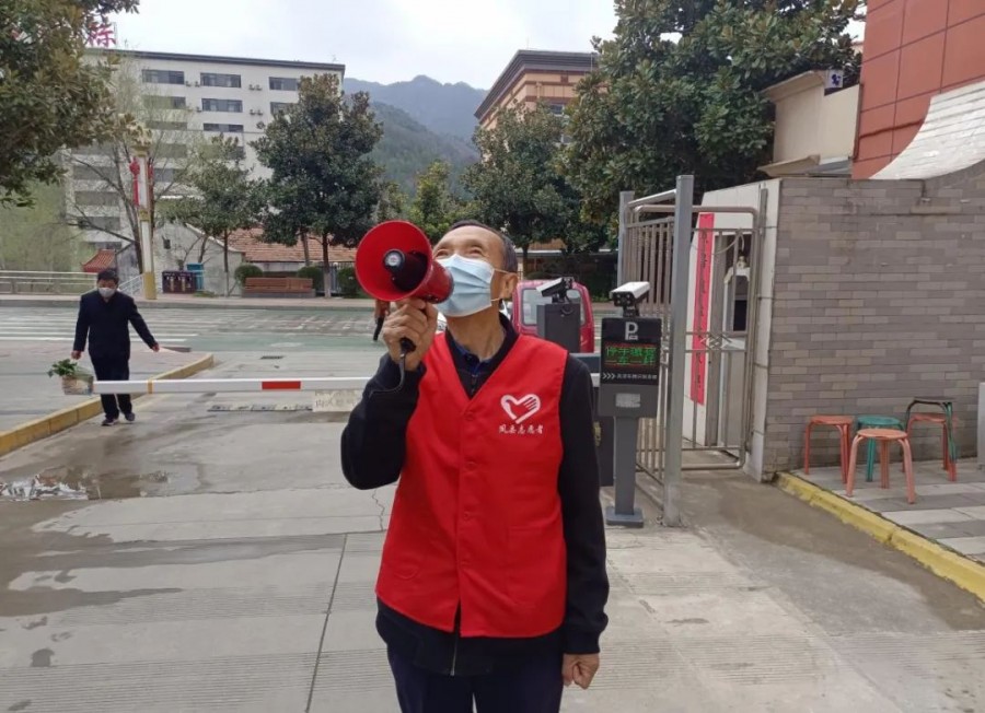 连日来,凤县物价局退休干部、原检查所所长、七旬老人刘国光佩戴党徽,身穿“红马甲”在杨家坪小区积极参与疫情防控工作。