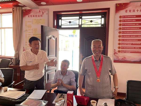 随后,张华锋为老党员谢启元戴上“光荣在党50年”纪念章。谢启元1972年加入中国共产党,党龄50年,在国家的各个发展阶段中亲身感受了祖国的繁荣昌盛来之不易,他表示:“这枚纪念章,是党对我们老同志的关心和关爱,是荣誉,更是责任。今后我会继续牢记党的教导,听党话、跟党走。”