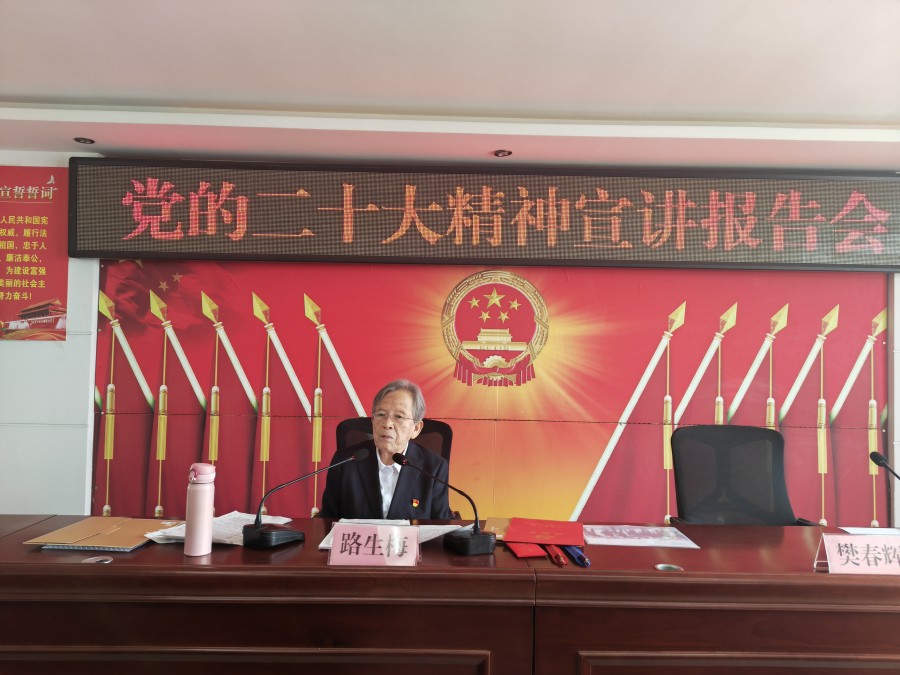 4月14日上午,省委老干部局党的二十大报告宣讲团走进全国离退休干部先进集体扶风县法门镇离退休干部党总支,省委老干部局宣讲团成员、党的二十大代表路生梅为老党员作党的二十大精神宣讲报告。省委老干部局、市委老干局、扶风县委组织部、法门镇有关负责同志及镇离退休干部党总支60多名老党员参加了报告会。