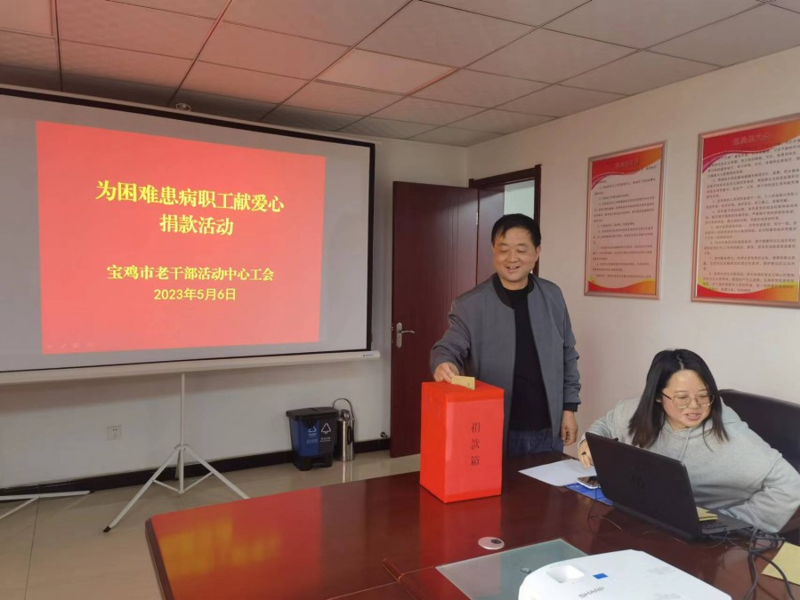 5月6日,市老干部活动中心(老年大学)工会组织开展为困难职工献爱心捐款活动,号召全员向身患重病陷入困境的困难职工伸出援手、奉献爱心,得到全体干部职工的积极响应。