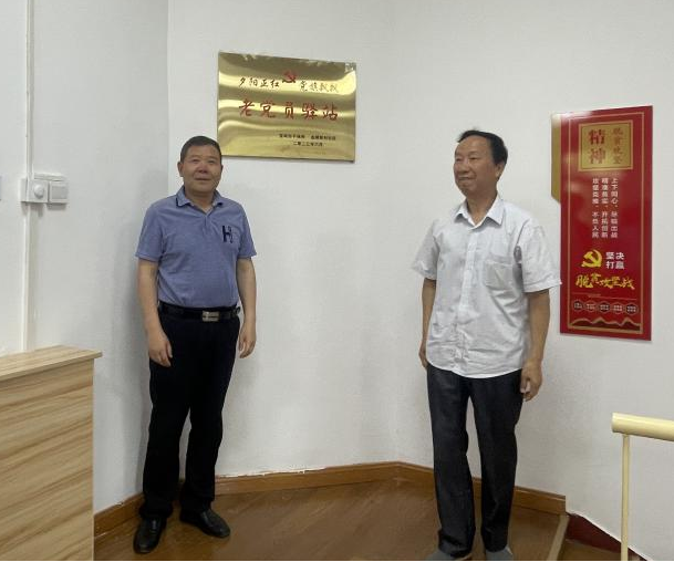 离休干部、市政府原副市长刘兴国,市委组织部老干支部书记张浩印分别与市委组织部副部长、老干局局长雒和忠为“老党员驿站”揭牌。