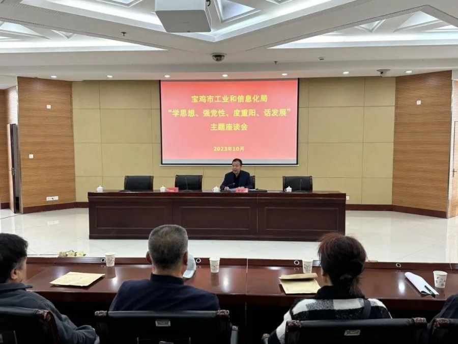 此次活动以“学思想、强党性、度重阳、话发展”为主题,组织离退休干部观看《宝鸡工业宣传片》,学习习近平总书记在学习贯彻习近平新时代中国特色社会主义思想主题教育工作会议上的讲话,听取局2023年以来工作开展情况,最后,大家结合活动主题进行座谈交流。