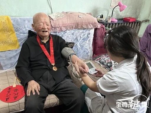 市委老干局、市文化和旅游局、渭滨区金陵新村社区联合为老人送上生日祝福;市妇幼保健院医护人员进行了义诊并提出健康建议。