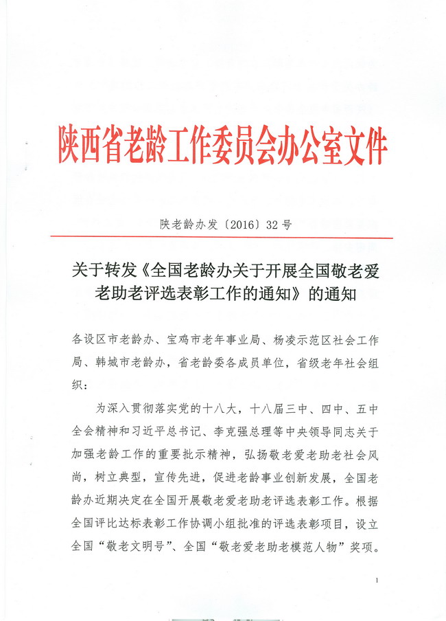 省老龄办《关于转发<全国老龄办关于开展全国敬老爱老助老评选表彰工作的通知>的通知》