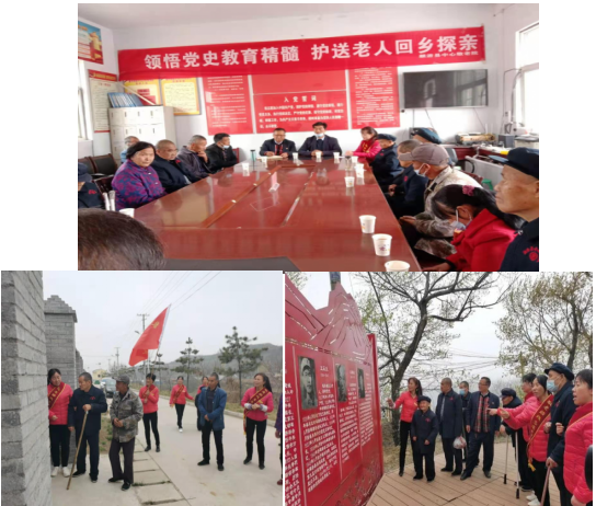 活动通过组织召开情感交流会,参观红色革命教育基地、新农村建设,探视旧居,和老人们一起重温家乡故土,缅怀革命先烈的丰功伟绩,接受红色文化的教育和洗礼。大家纷纷表示将会铭记党的辉煌历史,以革命先烈为榜样,传承红色基因,用实际行动将党史学习教育贯彻落实到行动中。