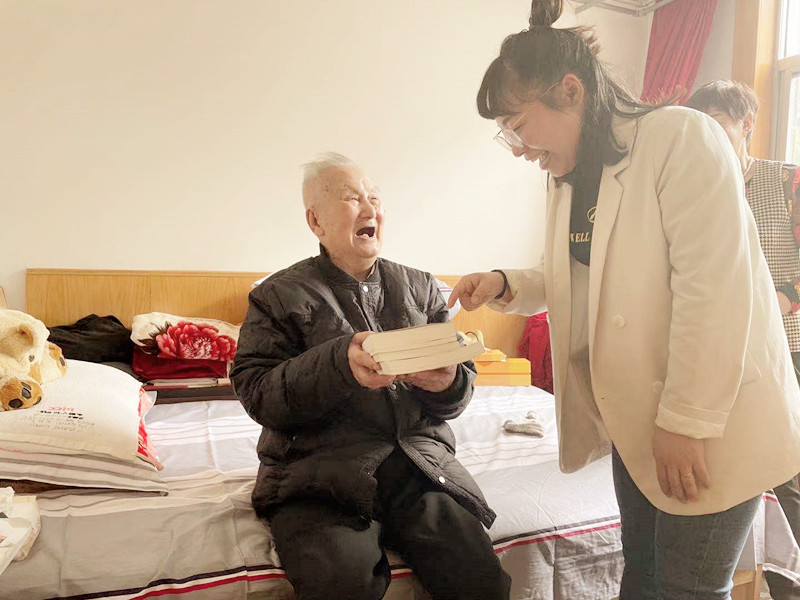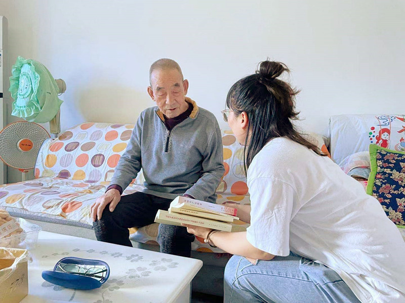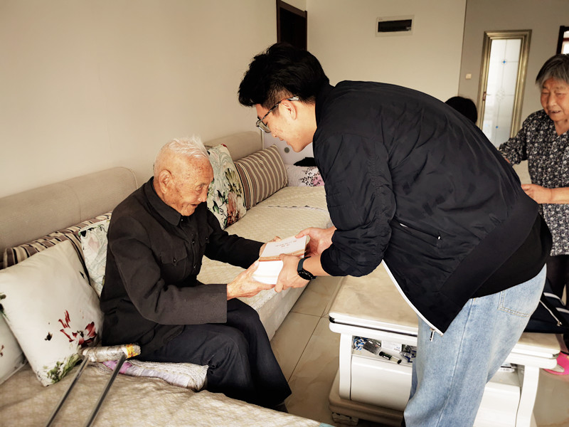 图:为百岁离休干部索照送去党史学习资料
