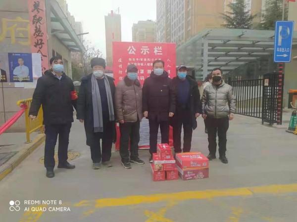 近期,扶风县百合社区离退休干部党支部在书记王玉亭和支委张温儒、周浩、吕松柏、杨文斌的带动下,积极参与到社区疫情防控工作中,他们主动领取任务,做好测温、扫码、返扶人员排查等工作。并自筹1000元购买物资,为祥云社区、百合社区等疫情防控一线工作人员送去慰问。老干部张温儒说:“虽然我们体能有限,无法前往一线,但我们一定会用我们的方式为疫情防控加油”