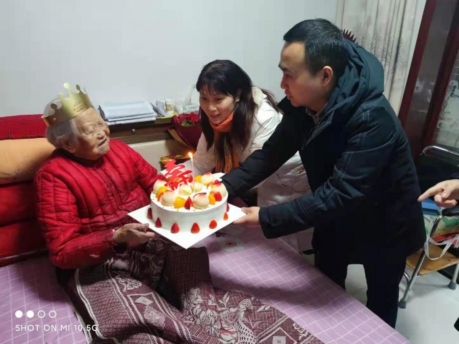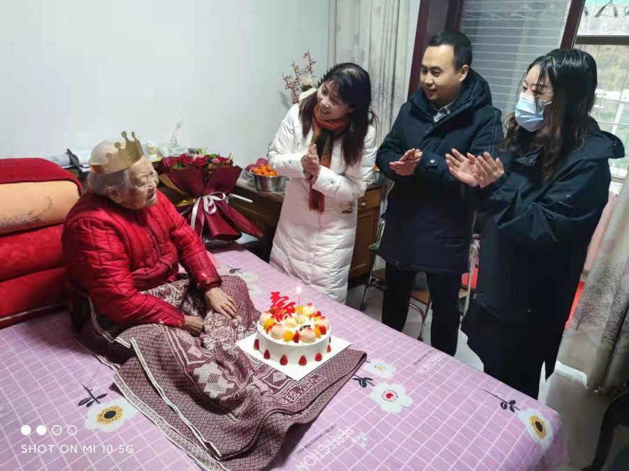 春雪满空来,触处似花开。2月18日,虽然天气寒冷,但金台区百岁老干部薛亚明的家里却是欢声笑语,老人的脸上洋溢着幸福的微笑,这是金台区委组织部、中山东路街道办、人民路社区工作人员在为她庆祝生日。薛亚明是抗战时期参加革命工作的离休干部,为新中国的成立和建设作出过突出贡献,在老人100周岁生日这个特殊的日子里,工作人员上门为老人送上鲜花,共唱生日歌,带去风雪天里的生日祝福。