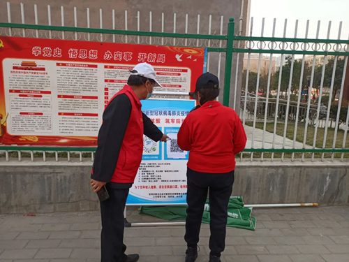 在全区核酸检测开始之初,“红马甲”崔师傅便主动到社区报到,当起了志愿者,每天和社区工作人员一样忙碌在防疫一线,早上5点上岗,核酸检测现场总能看见他健步如飞的身影,一会拿着喇叭挨着楼栋喊居民下楼做核酸,一会又在现场指导群众注册核酸检测二维码,一会又在叮嘱排队的群众保持一米距离,此外还承担着他所在铁路8号楼小区的防疫重任,每天12个小时的卡点值守、扫码测温、防疫消杀、政策宣传,每一项都全程参与,毫无怨言。总归是哪里需要哪里就有他的身影。社区工作人员每次劝说让他休息一会,他总是笑呵呵地说不累。他常说:“我党龄48年,比你们的年龄都大,我受党教育多年,现在退休了,国家发着工资,吃喝不愁,身体硬朗,闲着也是闲着,每天穿上这红马甲,带着党徽出来当志愿者,我就觉得自己浑身有劲,呵呵呵......”