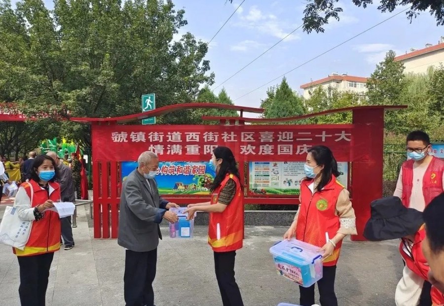 用爱温暖“夕阳”红。西街社区开展“喜迎党的二十大,庆祝重阳节”活动,邀请辖区“好心情”艺术团为老人们奉献了一场精彩的歌舞表演,歌颂伟大的党、赞美伟大的祖国。活动现场还为辖区70岁以上的高龄老人捐赠消毒湿巾、酒精、免洗凝胶、棉签、口罩等防疫物资的医疗健康大礼包,送上了慈善慰问金,延续健康与温暖,传承优良美德,坚守助老服务。