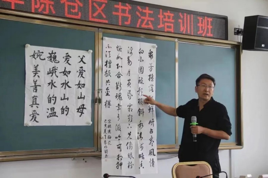 为深入推进文化养老事业蓬勃发展,满足老干部的学习热情,进一步营造老有所学、老有所乐的文化氛围,近日,陈仓区文化馆举办了书法培训班,邀请中国书法家协会会员、陕西省青年书法家协会副主席、区书法家协会主席符浩,区书法家协会名誉主席杨天成、副主席刘永军为30余名退休干部、书法爱好者提供了一堂丰盛的视听盛宴。