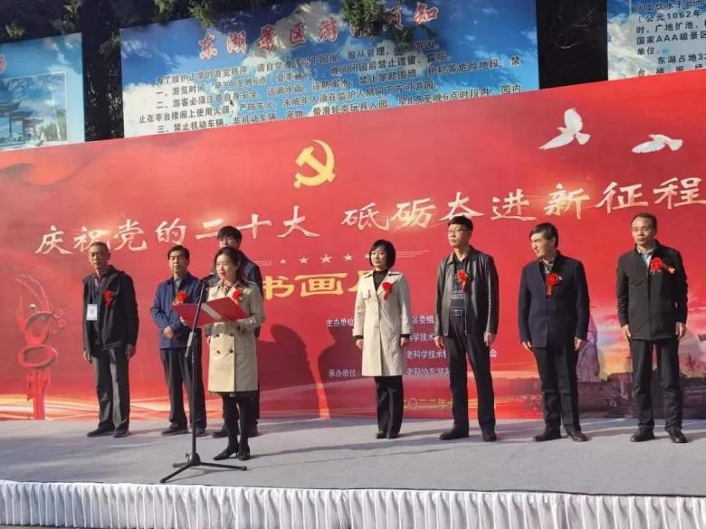 本次书画展共展出作品60余幅,主题鲜明、意境高远、特色突出,蕴含着东湖书画院老干部“离岗不离位、离职不离心”的敬业品质、心系改革发展,关心社会进步,发挥智慧余热的可贵精神。书画家们用翰墨丹青回顾党艰苦卓越的奋斗历程,用艺术魅力表达对党的深情祝福,用精品雅作抒发学习贯彻党的二十大精神的坚定信念,为党的二十大献上了一份厚礼,也为全区广大群众奉献了一场文化盛宴。