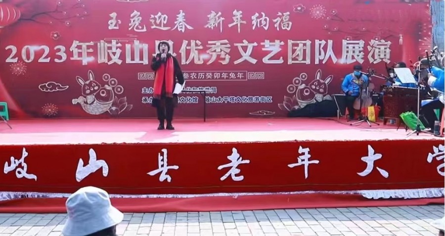锣鼓阵阵庆佳节,喜气洋洋贺新春。为大力传承和弘扬中华优秀传统文化,丰富群众精神文化生活。春节期间,岐山县老年大学戏曲班突出曲艺特色、弘扬戏曲文化,开展“曲艺贺新春,欢笑度佳节”文艺表演活动。