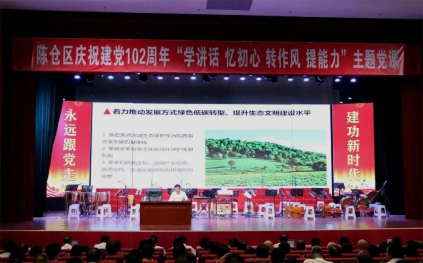 为隆重庆祝中国共产党成立102周年,近日,由陈仓区委组织部主办、陈仓区老年大学承办的“学讲话·忆初心·转作风·提能力”主题党课在区党政机关集中安置中心电影院隆重举行。