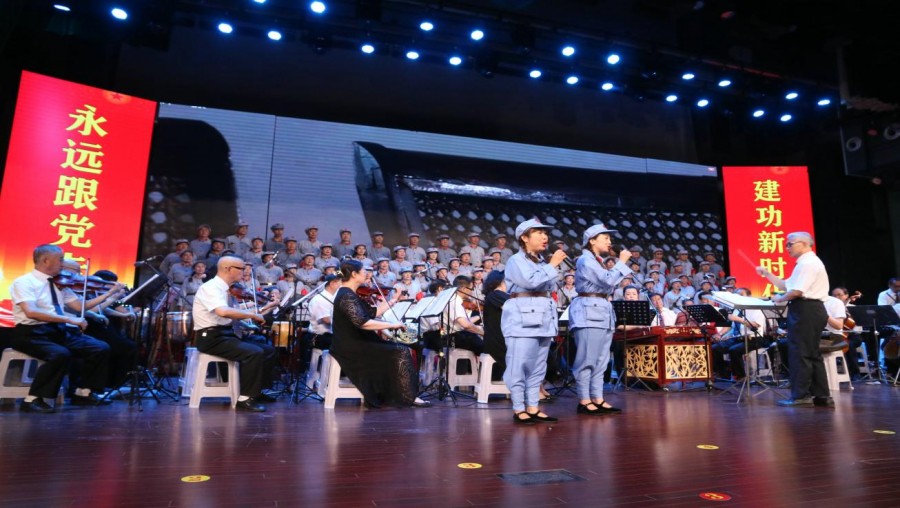 授课结束,区老年大学交响乐团、合唱团近百名平均年龄68岁的学员们深情演绎红色经典史诗《长征组歌》。展演在交响乐序曲《红旗颂》的优美旋律中拉开帷幕,交响乐团用动听的音符唤起红色记忆,用激昂的旋律传颂对党和祖国的热爱。演出分别以《告别》《突破封锁线》《遵义会议放光辉》《四渡赤水出奇兵》《飞越大渡河》《前进吧,中国共产党!》等10首经典曲目,用歌声缅怀革命先烈、追忆艰苦历程,记录长征那段艰苦卓绝的峥嵘岁月和红军将士为理想、为信念浴血奋斗的强大信仰和韧性。《长征组歌》情景再现,气势震撼、旋律恢宏,让现场观众融入音乐,穿越时空,征服空气稀薄的冰山雪岭,穿越渺无人烟的沼泽草地,击退上百万追兵阻敌,长驱二万五千里,在嘹亮、震撼的歌声中重现长征惊天动地的英雄史诗。红歌唱的是英雄事迹,汇聚的是人民力量,绽放的是红色荣光。重温党的光辉历史,讴歌党的丰功伟绩,弘扬长征精神、庚续红色血脉,是咬定青山不放松、千磨万击还坚劲的恒心和决心,更是奋进新时代、踏上新征程的时代最强音。