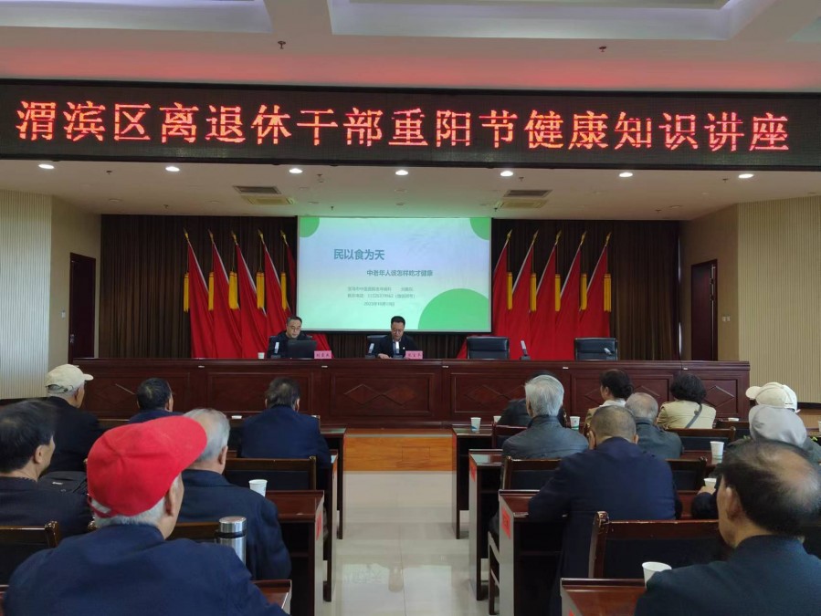 重阳节来临之际,为了进一步提高广大离退休干部的健康意识,10月19日下午,渭滨区委老干局举办《民以食为天——中老年人怎样吃才健康》主题健康知识讲座,邀请市中医医院老年医学科主任刘震东为区170余名离退休干部讲授健康饮食知识。