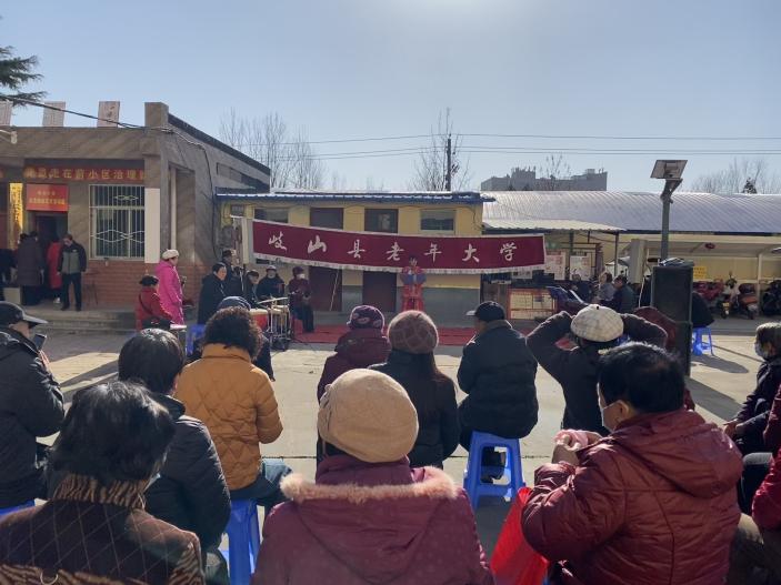 为充分发挥银龄力量、丰富居民精神文化生活,12月25日,岐山县凤鸣镇凤鸣东路社区联合县老年大学走进辖区小区,开展“庆元旦·传党音·暖民心”主题活动,通过文艺表演与政策宣讲相结合的形式,为社区增添浓厚的节日氛围。