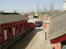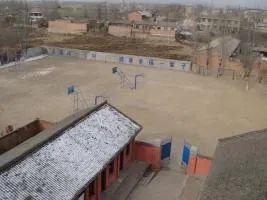 上世纪九十年代的老校门梁、黄土做地面、两面淌水的厦房。整个校园极不规则,处于几个不同的水平面上:东西长,南北窄;北面高,南面低;东面高,西面低。教师办公也好,住宿也罢,几个人挤在一间房子里,夏季热得淌汗,冬季冷得打颤。有十多间办公兼住宿的房子建在校园西北角一个有四五米深的坑里。一出门眼前看到的西面和北面就是四五米高的土崖。老师去教室上课,只能往东走,上狭窄且陡峭的十几级无护栏的台阶。每到冬季和下雨天,其危险程度可想而知。