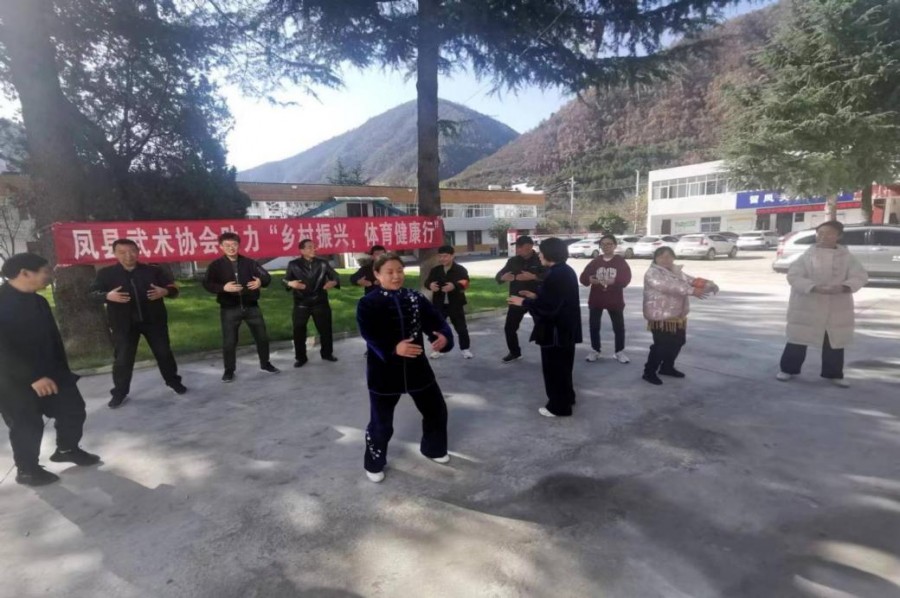 11月16日,凤县老年大学太极拳辅导站应邀参加全县2022年助力乡村振兴体育健康行“五进”活动。