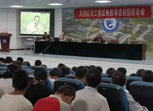 近日,区关工委主任冶新科带队走进凤翔区柳林高级中学,为该校500多名师生宣讲了红色故事,营造了“故事汇”进校园的浓厚氛围,拉开了全区讲英模故事、传红色基因的帷幕。